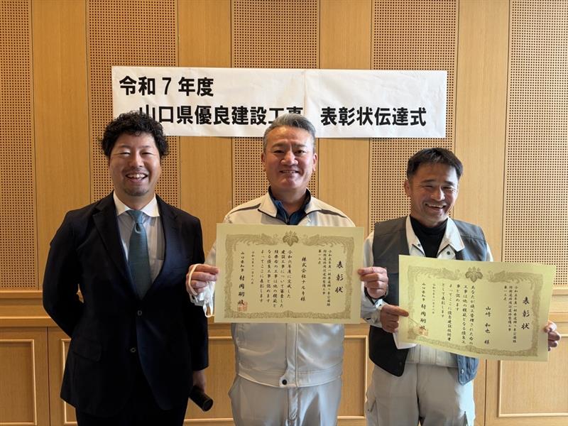 山口県 「令和7年度 優良工事 表彰」を受賞しました。
